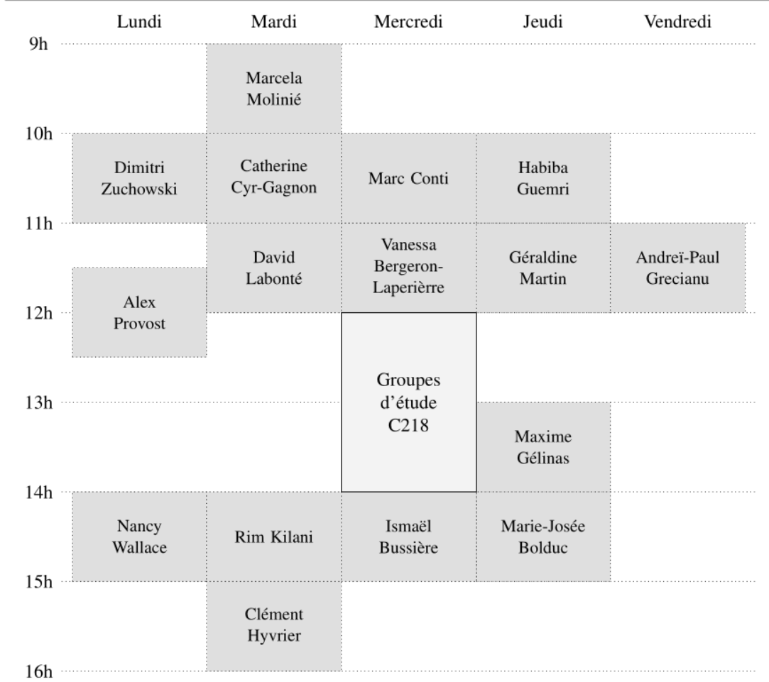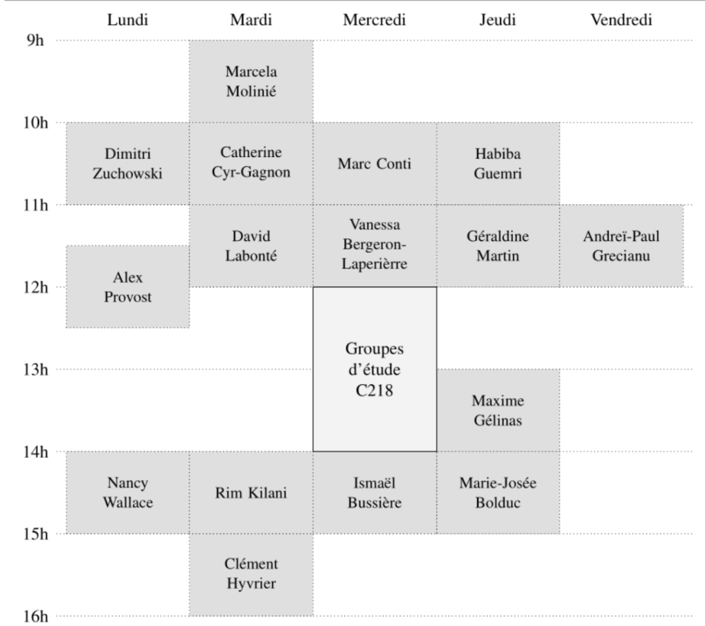 Vous pouvez consulter l’horaire de disponibilités des enseignantes et enseignants.